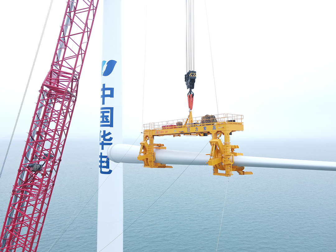 由巨力索具为中国内地渔业小组海装风力发电股分不断集团公司生厂打造的5MW水上单叶子吊具在武汉平潭设备吊装美好得胜。