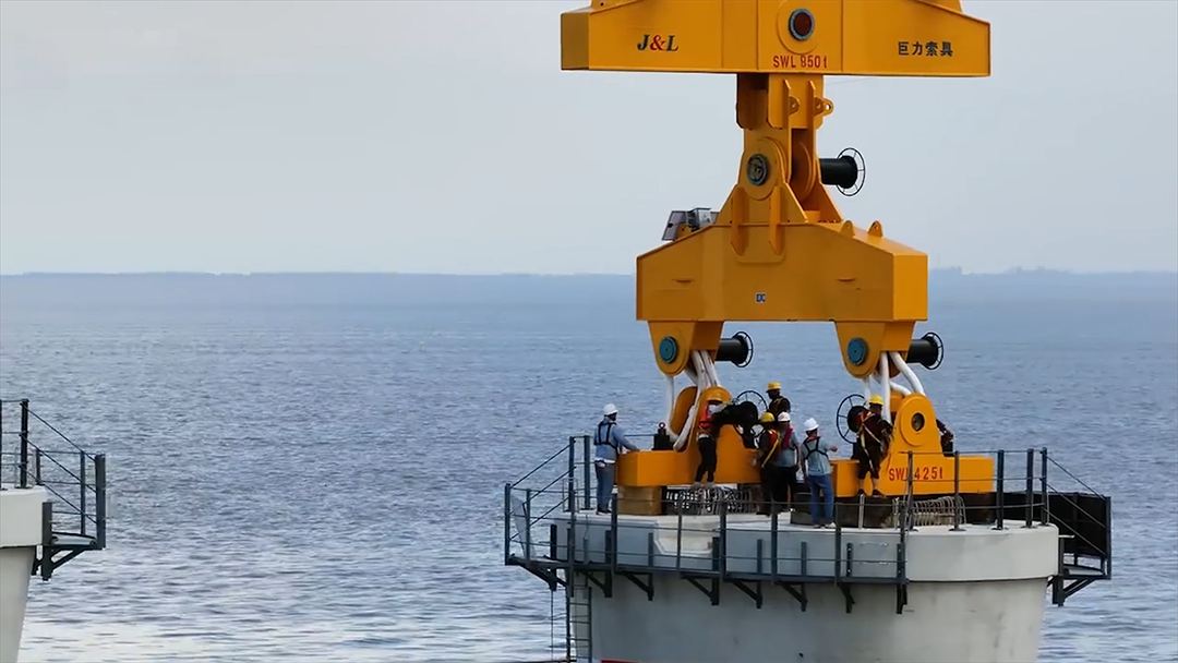 巨力索具标奇建立了“三合一式自动化多样化吊中应系”保驾护航成都湾跨海高速公路桥首坐混凝土预制构件墩身顺利架线。本次混凝土预制构件墩身架线是天下无双第二次在强潮港湾复杂化水文气象前题下已完成!