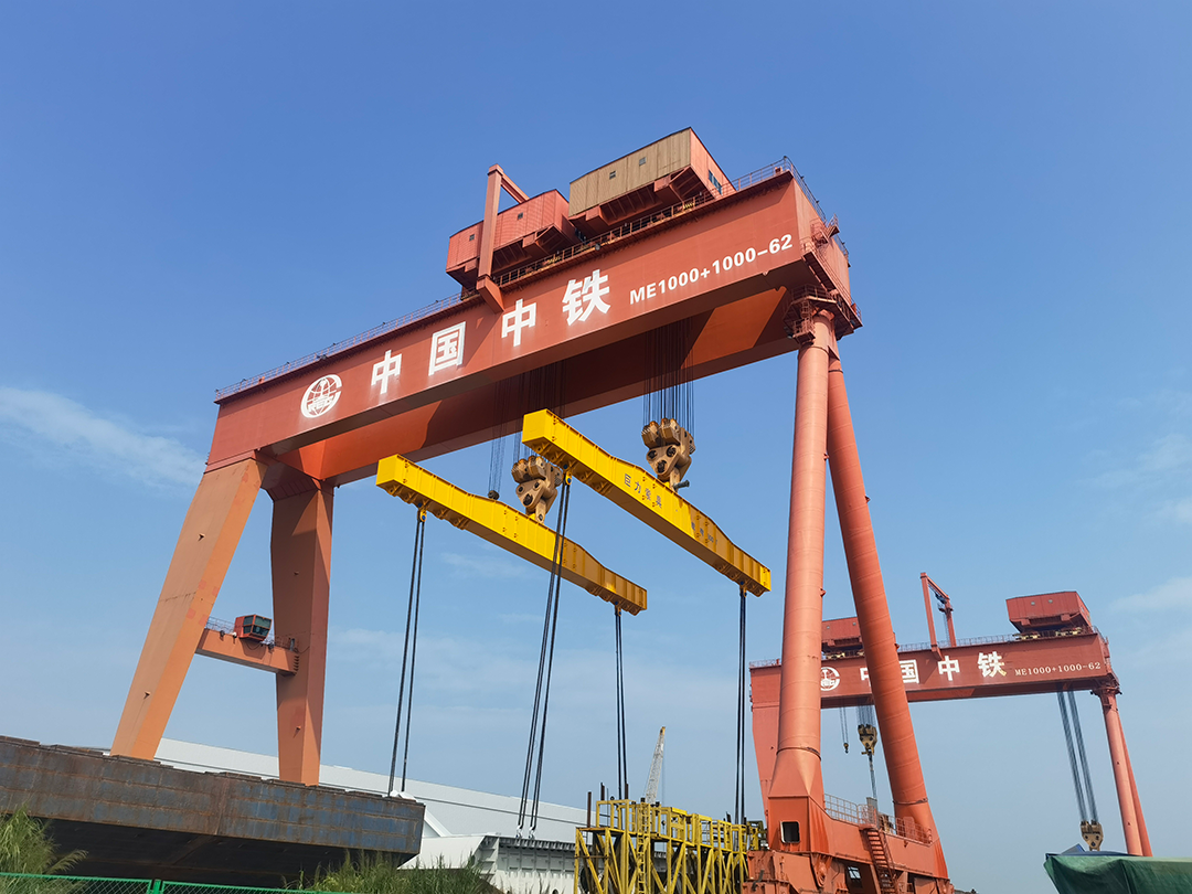 中铁立交桥局修建的常泰长江立交桥,主航线桥首支1280吨的钢梁起吊完工,巨力索具1900吨小节段钢梁吊具一趟有保障该类别起吊顺遂停止工作。